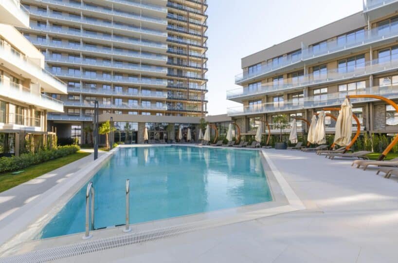 Above all, Bornova Luxury residential provides multiple playgrounds, a walking path, working room and a library. Moreover, this complex have an outdoor and indoor swimming pool, a sauna and many other facilities. On the other hand, you can double benefit from excellent city access and the proximity to public transport stations with living in this residential complex.