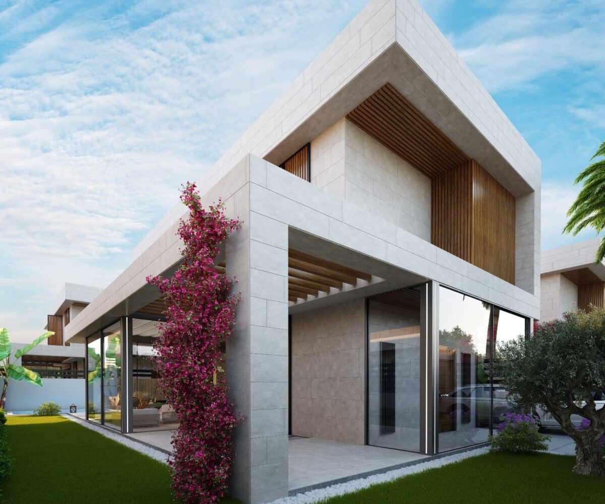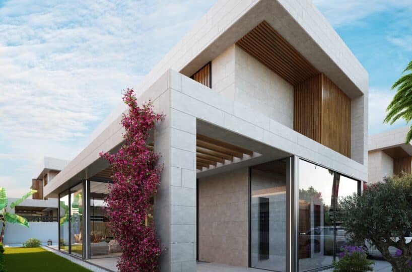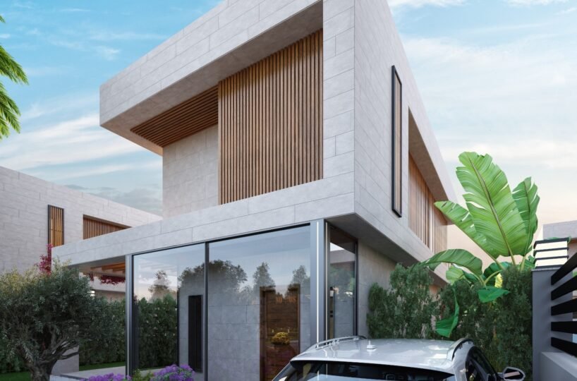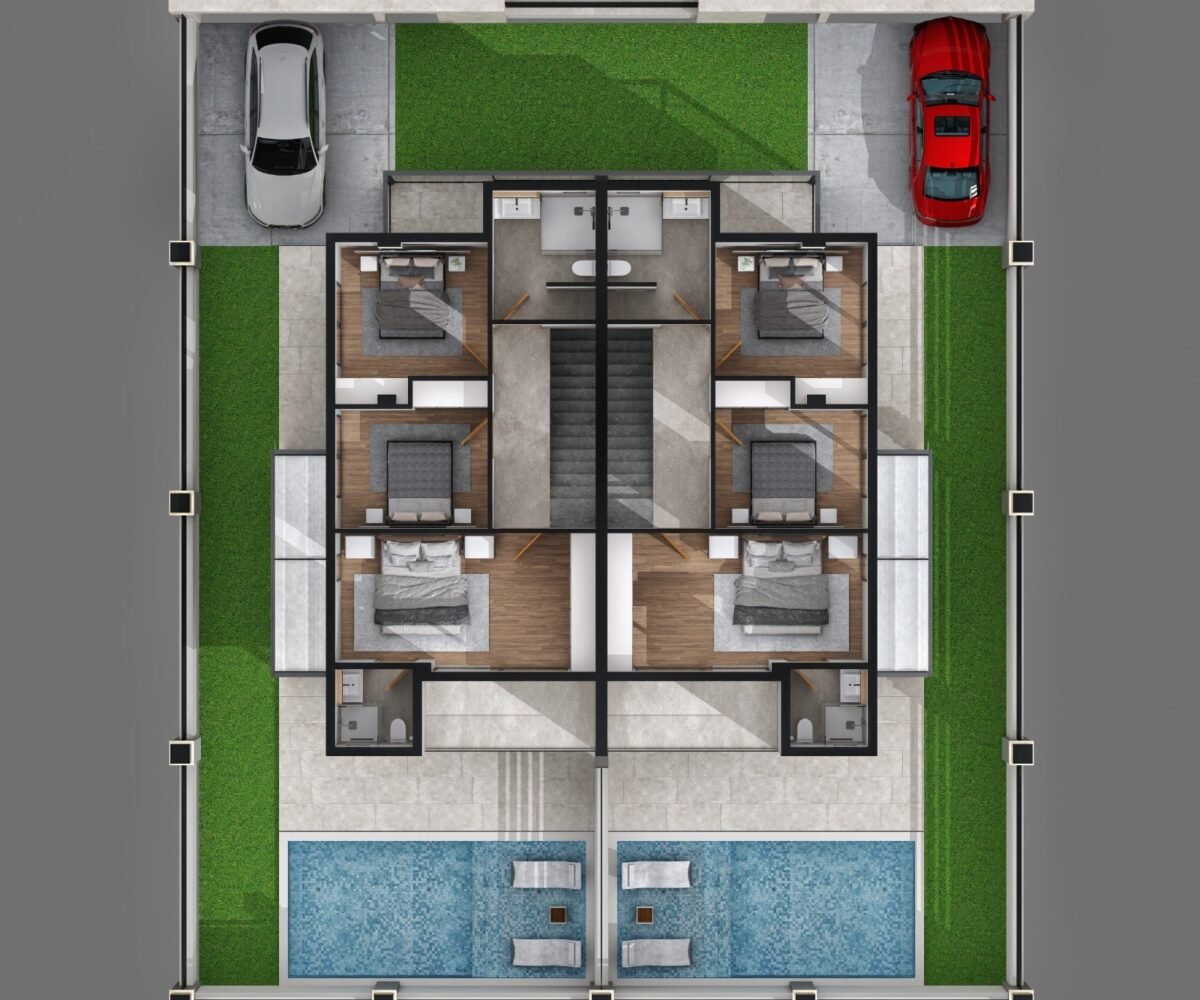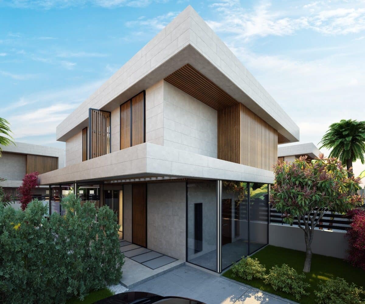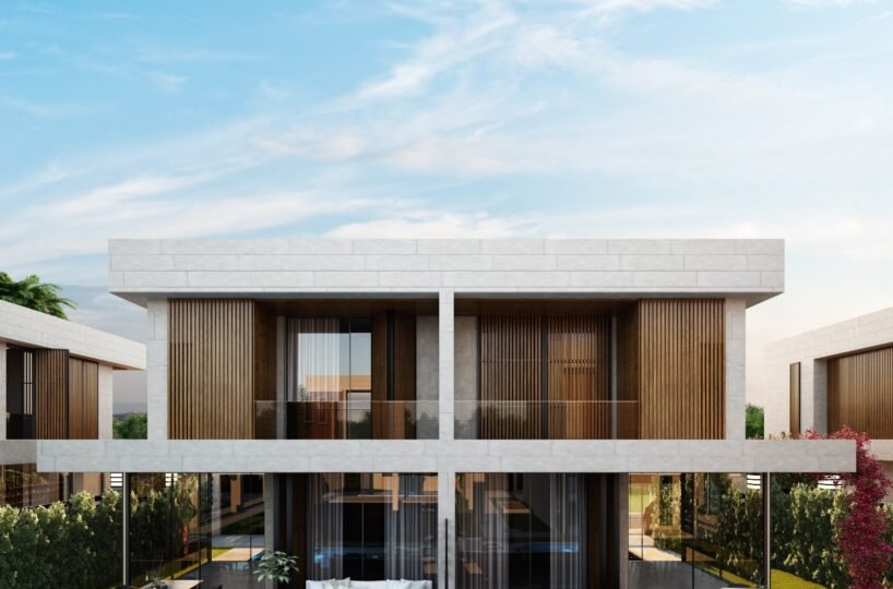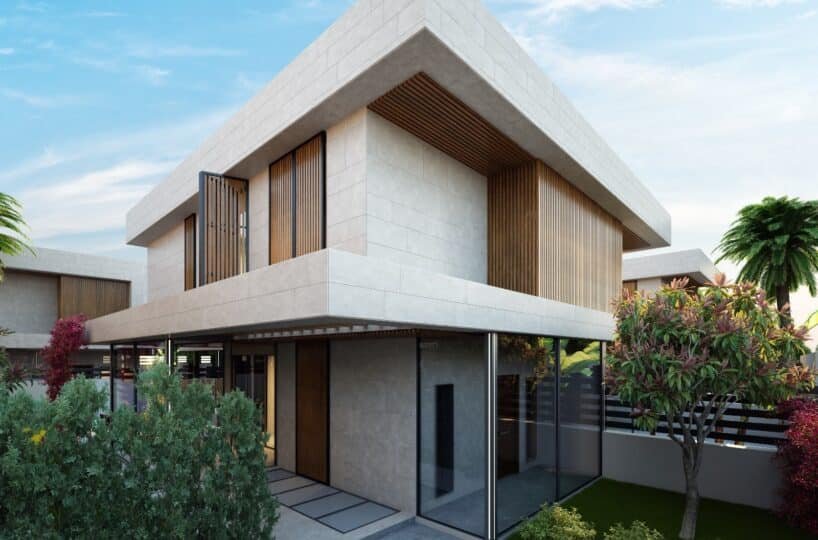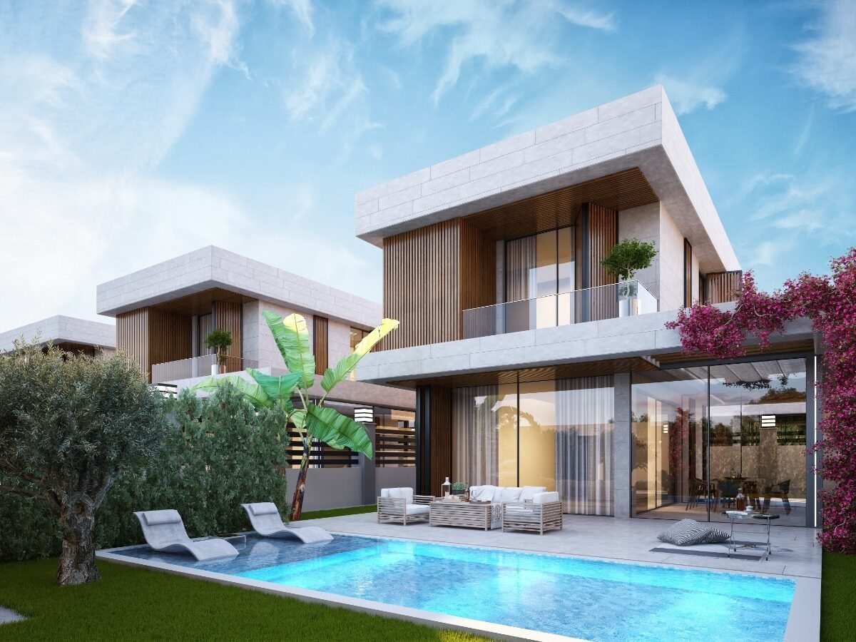 This project has 8 private villas, 10 twin villas, and 8 stores. Each villa has its own garden, parking, and private swimming pool.