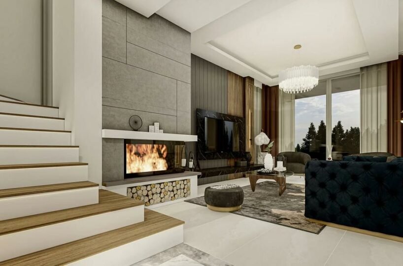 Each of our 11 private villas, which stand out with their unique and modern interior and exterior architecture, consists of 4+1 plans. Living room with fireplace, modern island kitchen design, 7-piece Franke brand built-in set, spacious and large rooms, bathroom in each room, dressing room in the master room, smart home system, built-in air conditioning system, smart underfloor heating system (natural gas).