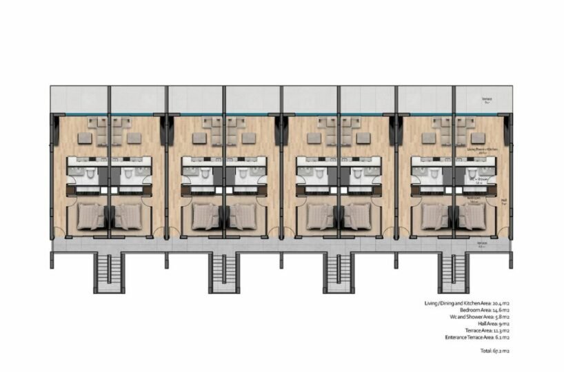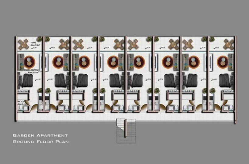 Each residence within the community, including the studio flats, is thoughtfully designed to provide a comfortable and refined living space. Ideal for individuals seeking a cozy and contemporary environment, these residences are furnished with all the necessary amenities to create a seamless blend of functionality and style.