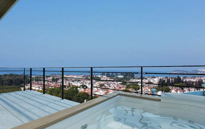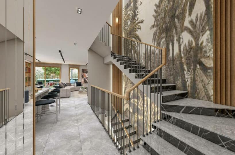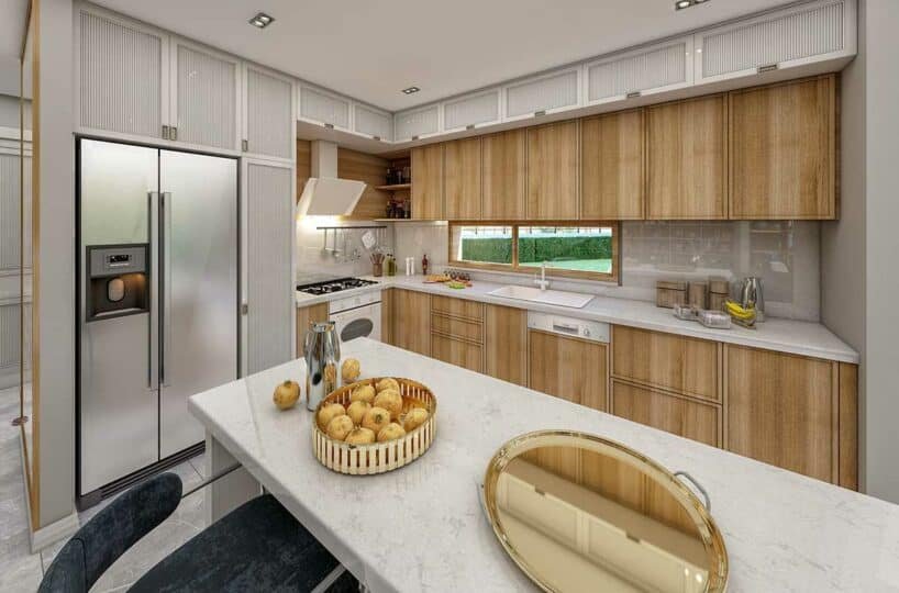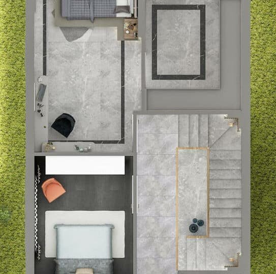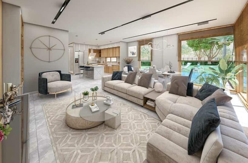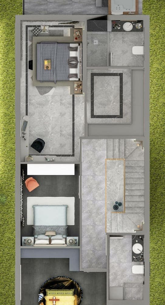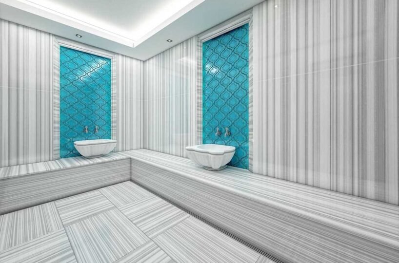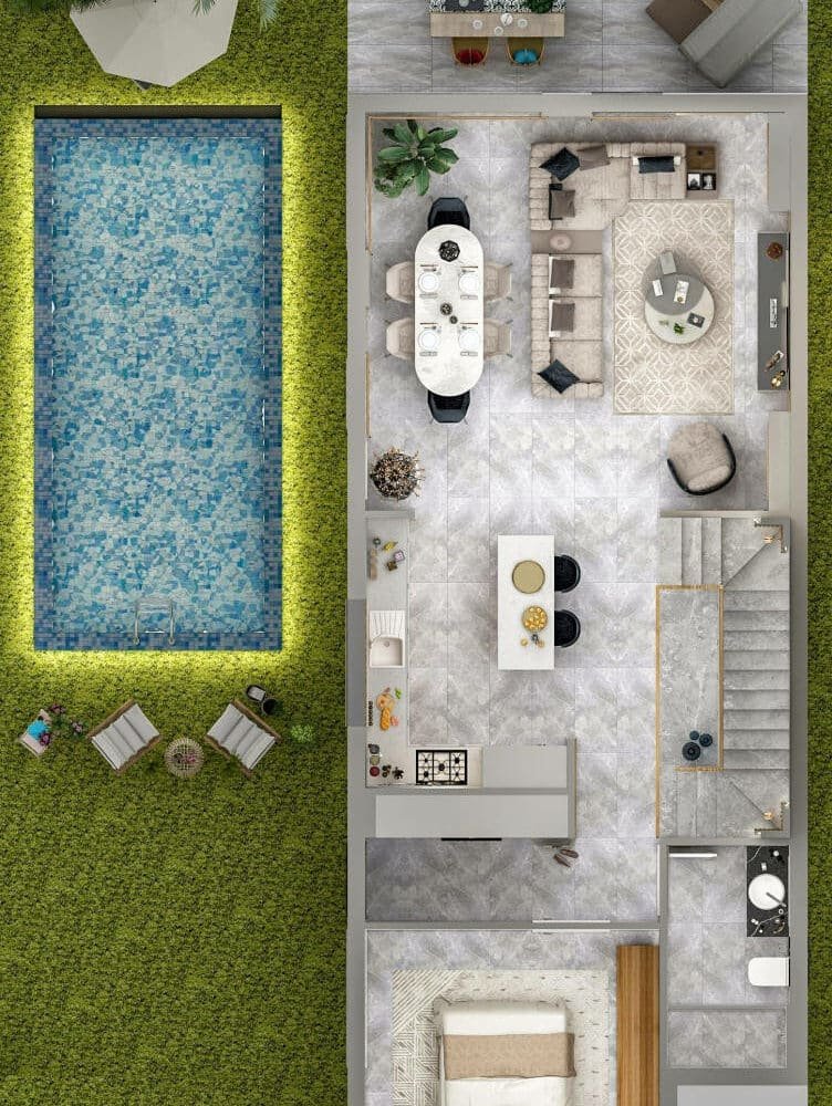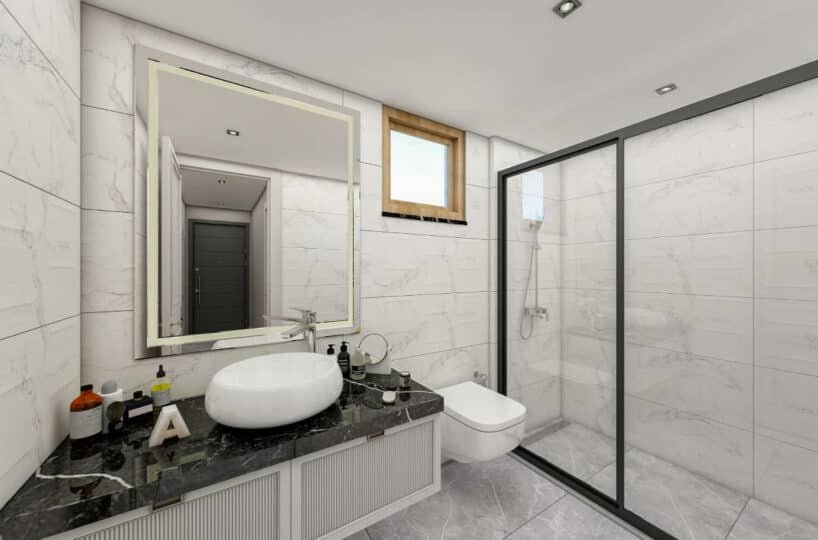The triplex villas, which are the largest villas of the project, are designed as 6+2. These villas have both 5 bathrooms and special areas such as a jacuzzi, hammam, sauna, and cinema room.