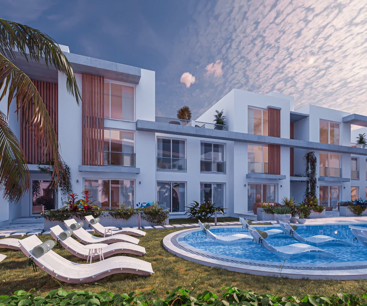 Welcome to our exceptional residential complex nestled in the picturesque town of Yeni Bogazici, Northern Cyprus. Immerse yourself in the beauty of nature as you explore our thoughtfully designed flats that offer a harmonious blend of comfort, elegance, and tranquility.