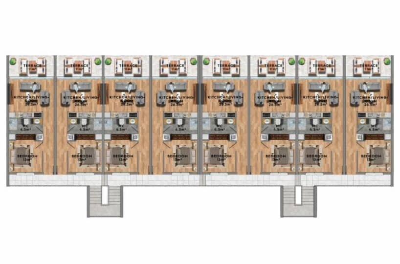 This upscale community features a variety of housing options to accommodate your unique preferences. Choose from chic 1+0 studios, luxurious 2+1 flats, or magnificent 3+1 detached villas, each adorned with state-of-the-art amenities and exquisite finishes to ensure an exceptional living experience.