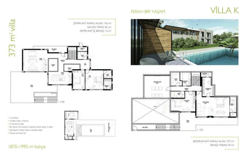 Super Lux villa complex in one of the best parts of Urla Izmir. Special villas with private pools and garden. Duplex plans four bedrooms, five bedrooms and six bedrooms.