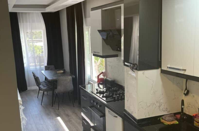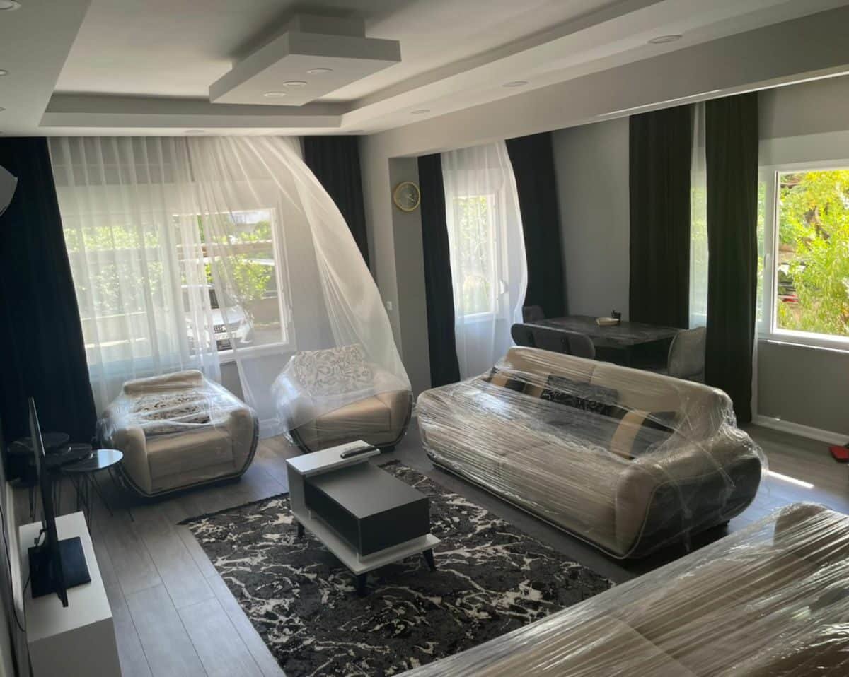 This property has an interior space of 120 m2 and includes two bedrooms (2+1), one bathroom, a balcony, and a kitchen. The kitchen has been equipped with some of the best goods with high-quality cupboards for you to store your items. Spacious closets have been put in the bedrooms. The living room area has been gifted with large windows that bring in lots of natural sunlight and make the setting of the property much warmer and more appealing.