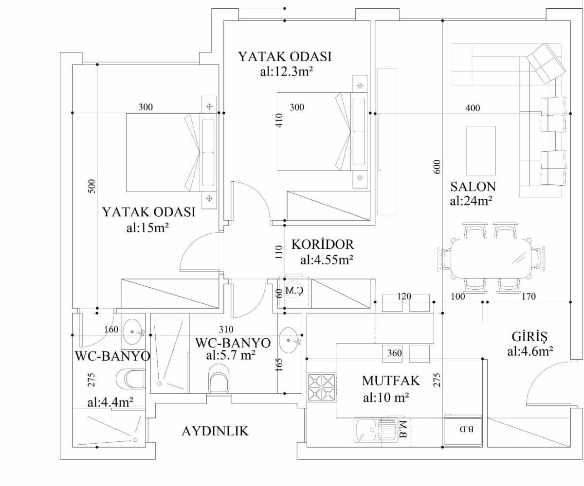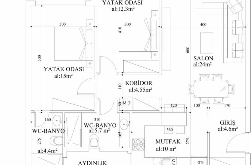 2+1 Ground Flats: Ideal for families or those seeking a bit more space, our 2+1 ground flats range from 81 to 85 square meters. These flats provide a harmonious blend of comfort and functionality. Boasting two generously sized bedrooms, two modern bathrooms, a modern kitchen, and a spacious living area, these flats offer the perfect sanctuary for your loved ones. Enjoy the luxury of a private terrace, where you can create cherished memories with family and friends.
