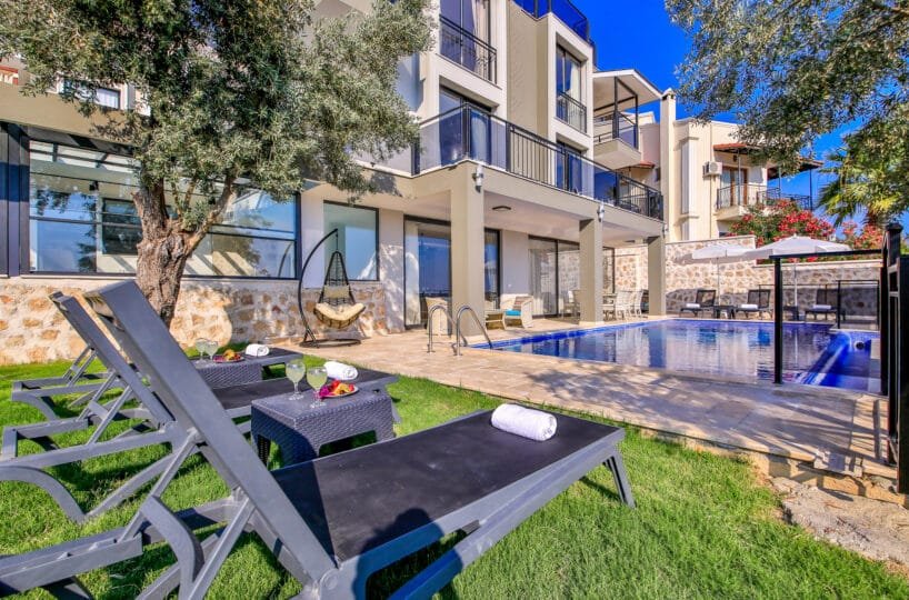 This magnificent triplex villa boasts five spacious bedrooms and one living room, perfect for accommodating large families or groups of friends. The villa is situated in a picturesque location with stunning sea views, making it an ideal destination for those looking for a tranquil and relaxing getaway.