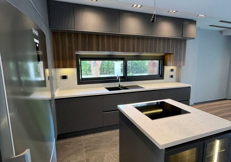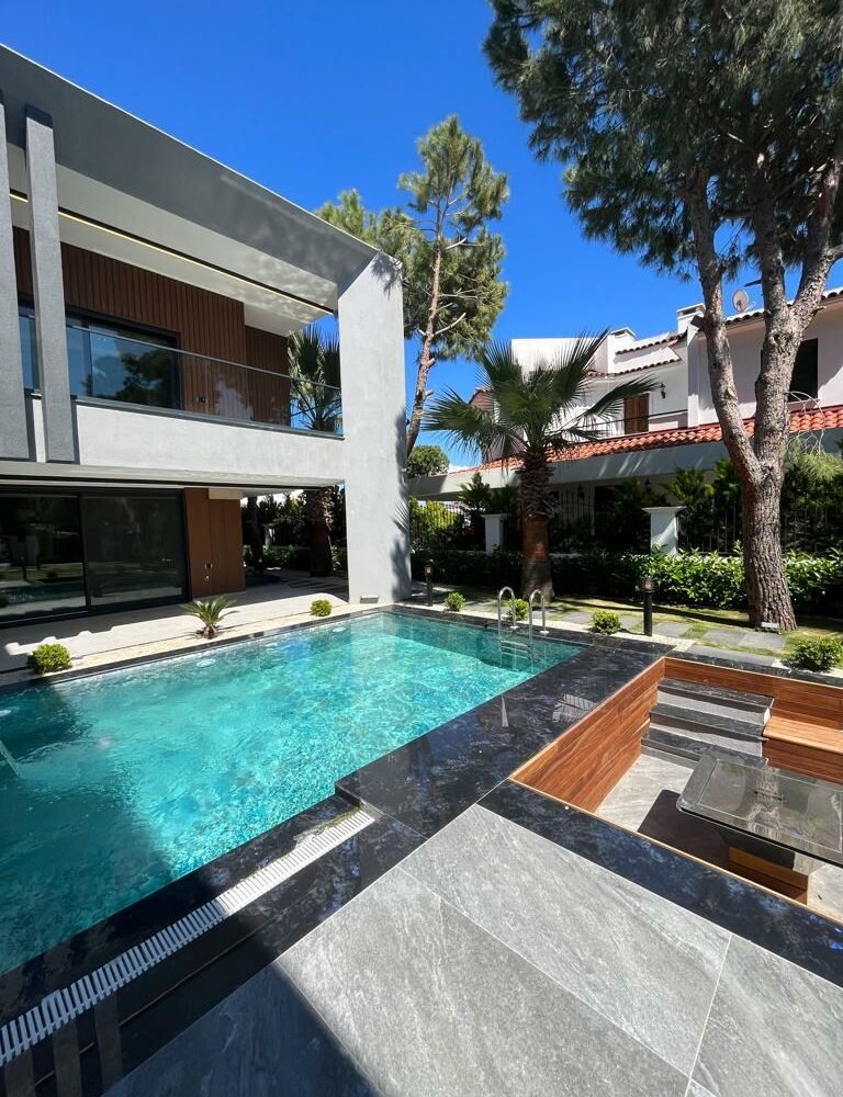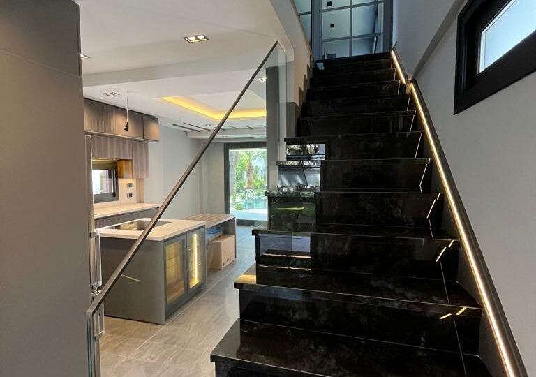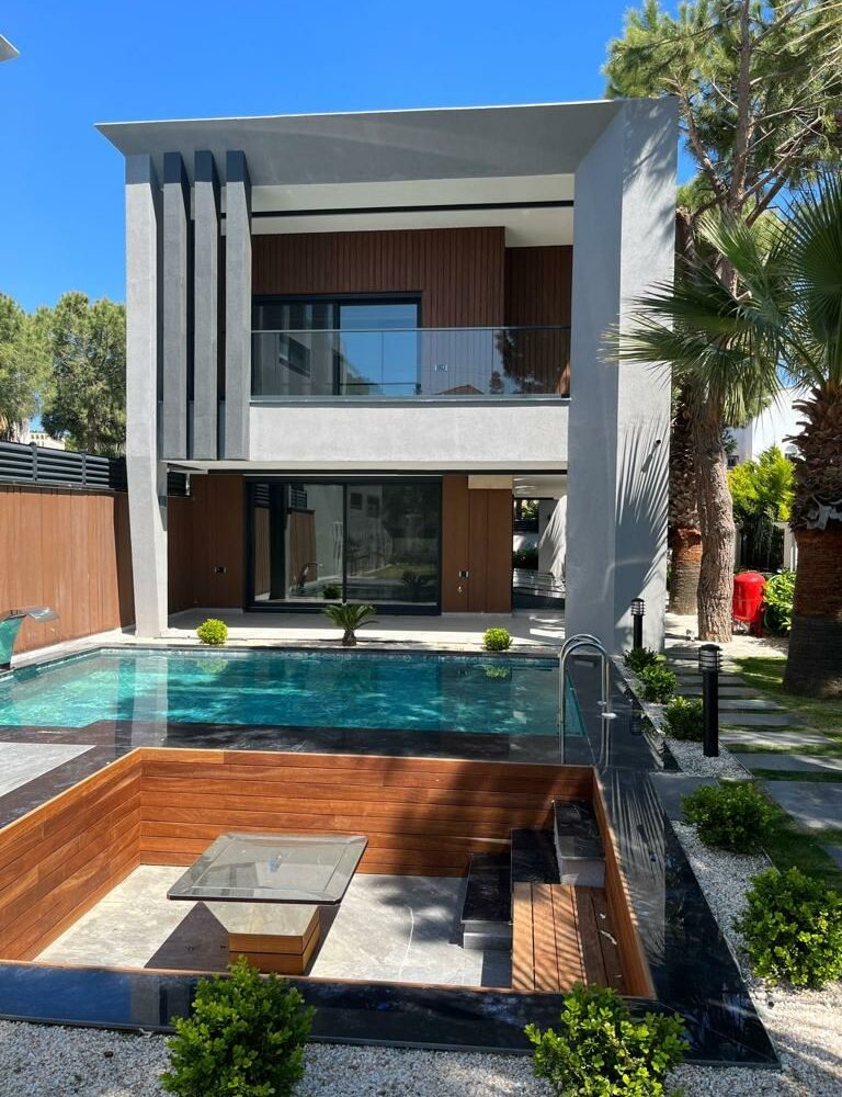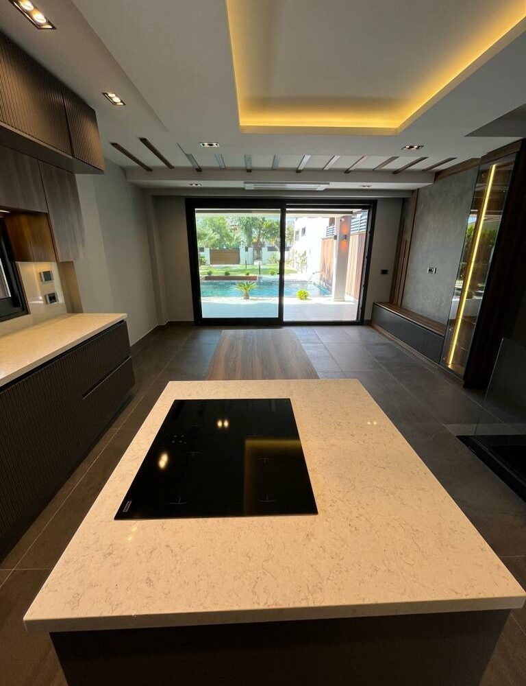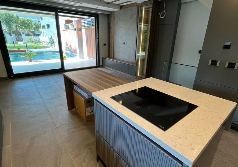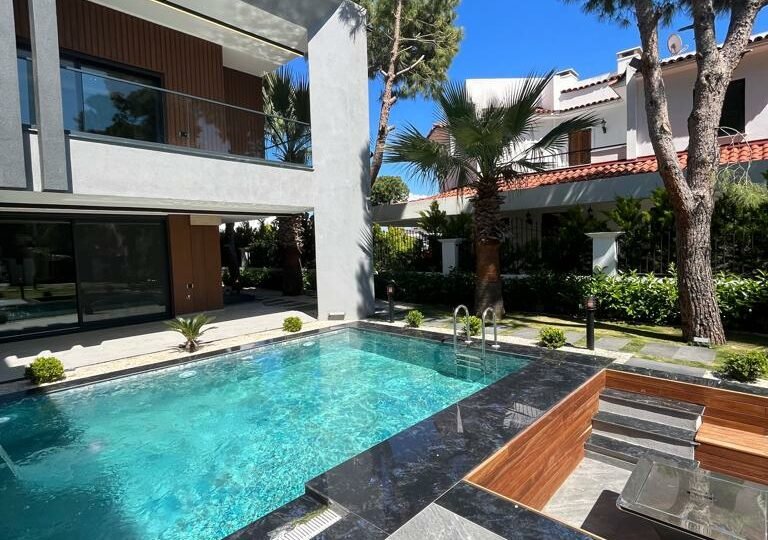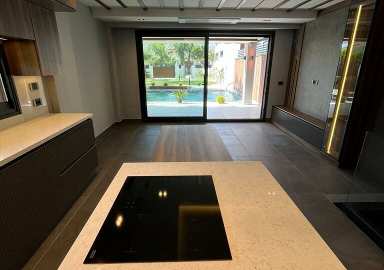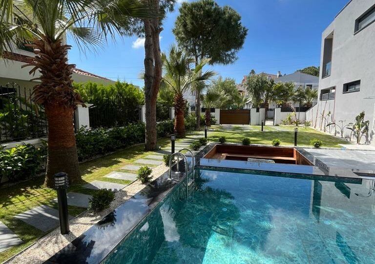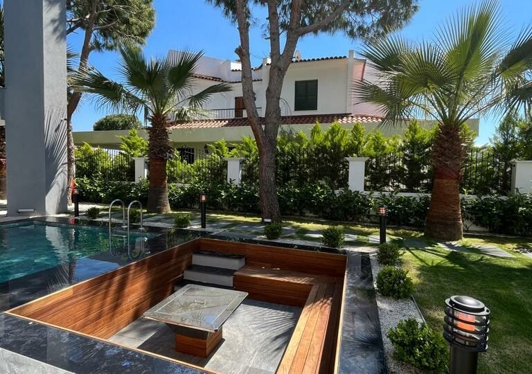 Çeşme, Izmir is a popular vacation spot in the Mediterannean and offers luxurious villas to its visitors. Entering the villa, you find yourself in an intimate living dining area with rich details and wood gleaming through the glass panes. To your right is a lovely kitchenette with all the amenities; left of this room leads to a large conservatory with a wonderful view of Çeşme harbor. Large windows bring natural light into the main bedroom suite, complete with ensuite bathroom and walk-in closet. From here, another set of doors open directly onto enchanting lawns and gardens, perfect for meals in private or enjoying a refreshing drink. What could be more relaxing than taking in the sunsets over the picturesque Mediterranean Sea from your own terrace?