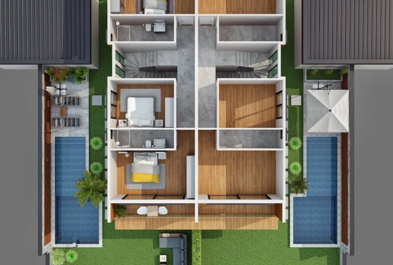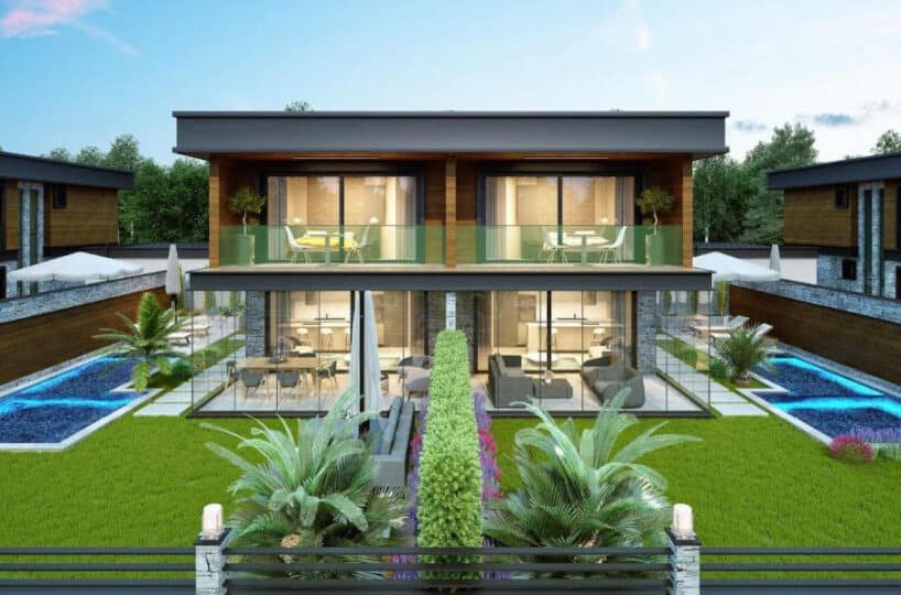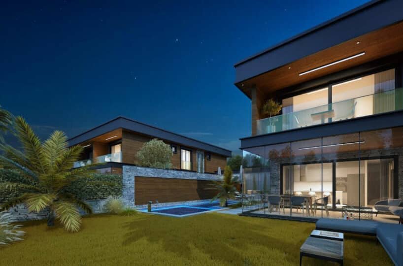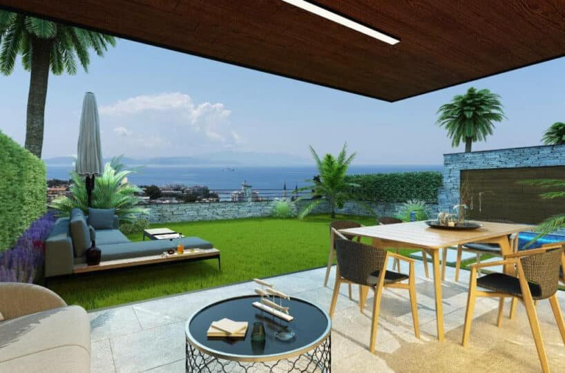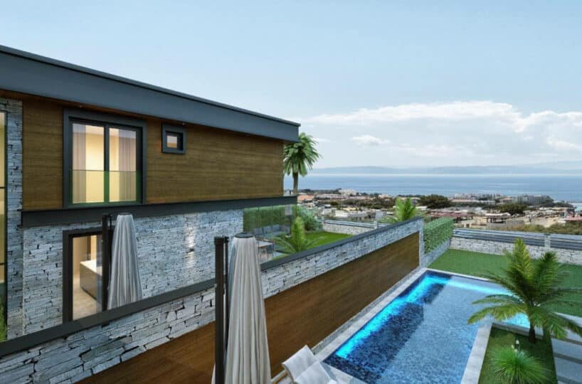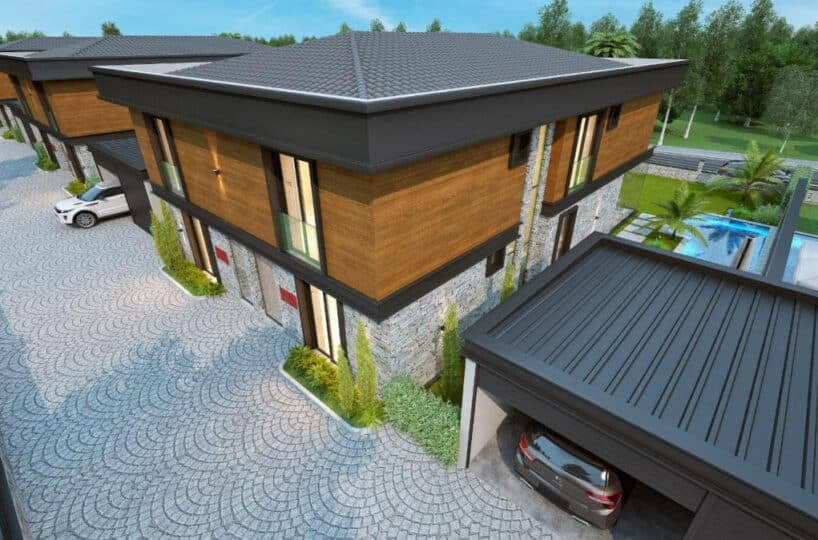 This project consists of 12 twin villas, and everyone has a private pool and covered and open parking lots. These duplex villas consist of 4 bedrooms in 145 m2 net of 230 m2 brut (private pool is considered). All the rooms are illuminated with sunshine, and an eye-catching and relaxing sea view.