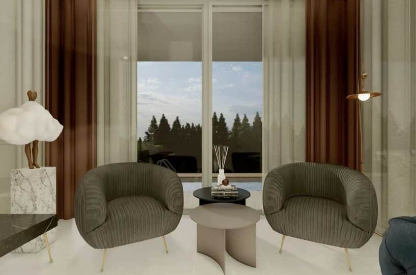 Каждая из наших 11 частных вилл, отличается уникальной и современной архитектурой интерьера и экстерьера, состоит из 4 комнат и 1 гостиной. Гостиная с камином, современный дизайн кухни, встроенный гарнитур Franke из 7 предметов, просторные и комнаты, санузел в каждой комнате, гардеробная в главной комнате, система умный дом, встроенная система кондиционирования, теплый пол система (природный газ), сантехника Bocchi, первоклассная керамика и плитка марки Vitra, стеклопакеты Linea Rossa и первоклассное качество изготовления, предлагают вам жизнь в комфорте 5-звездочного отеля.