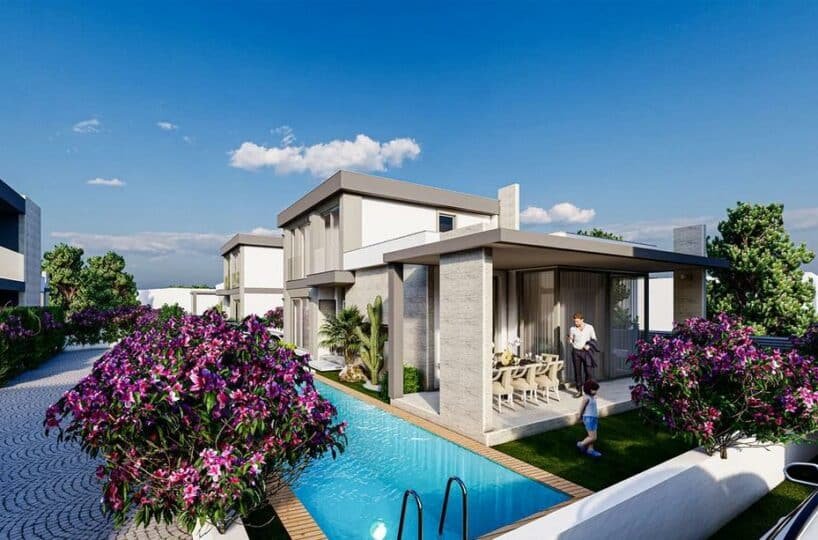 Все наши виллы выполнены в едином стиле; Они имеют земельную долю 365 м² и чистую площадь использования 147 м². Каждая из вилл предлагает вам удовольствие от владения отдельным домом в комплексе, с собственным ландшафтным уединенным садом и собственным бассейном. С привилегией частного сада и частного бассейна, каждая вилла имеет частную парковку на 2 машины.