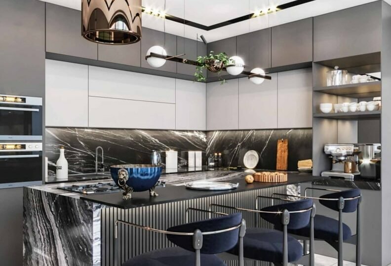 - Five built-in sets in the kitchen (Dishwasher, oven, hob, hood, and microwave oven)