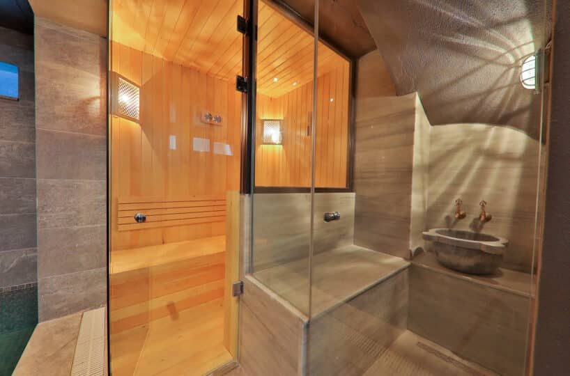 Step inside and discover a world of indulgence, where every detail has been meticulously crafted to ensure your utmost comfort and pleasure. In the basement floor of each villa, you will find a private closed pool, sauna and hamam, providing you with the ultimate relaxation experience in the comfort of your own home.