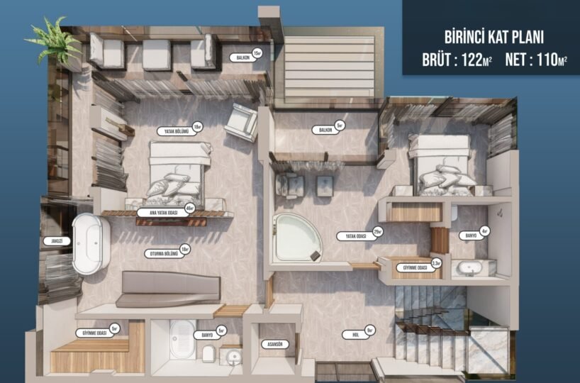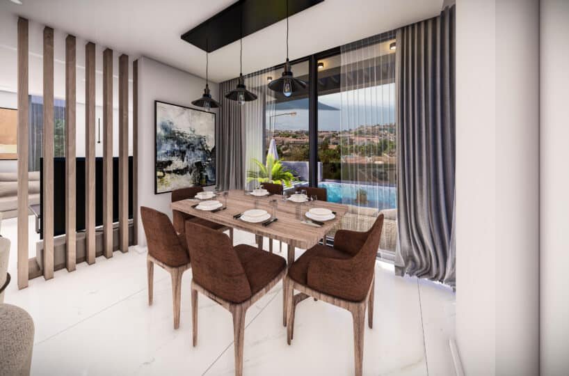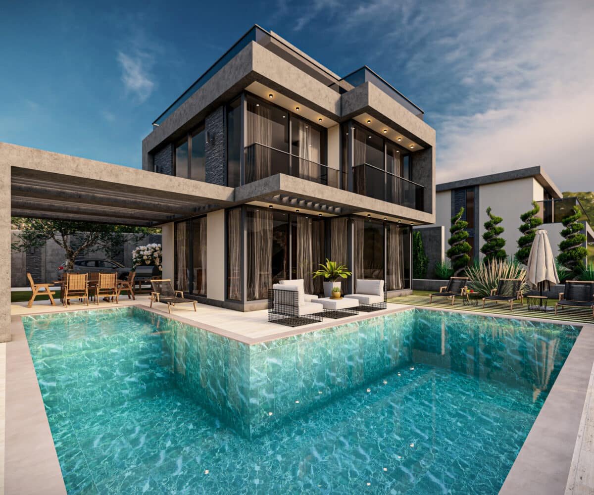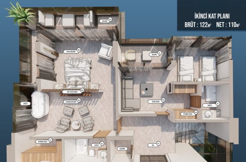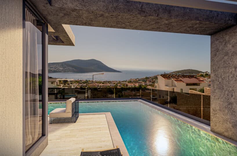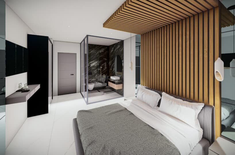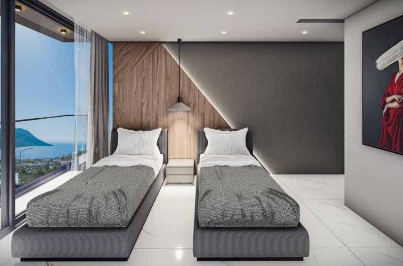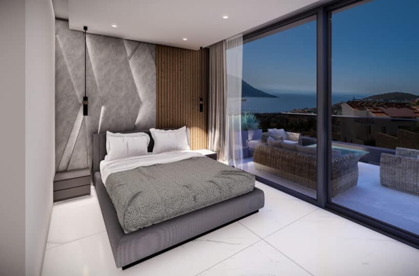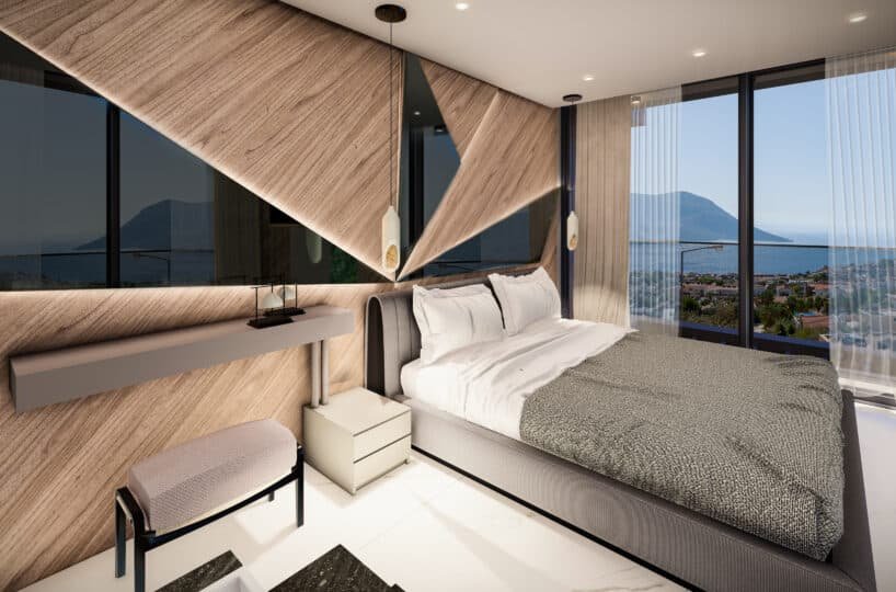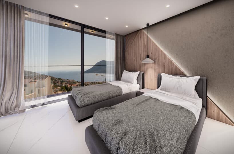 Перемещаясь на второй этаж, вы обнаружите две роскошные главные спальни с гардеробными. Каждый номер наполнен естественным светом и предлагает захватывающие виды на море, создавая серенити и расслабляющую атмосферу.